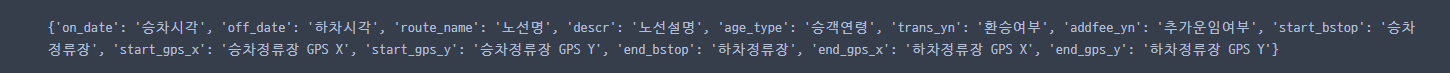 df_bus_card_col_new_dict[df_bus_card_col_org.loc[i, "컬럼명 (영문)"]] = df_bus_card_col_org.loc[i, "컬럼명 (한글)"]