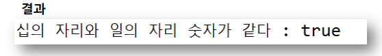 System.out.printf("십의 자리와 일의 자리 숫자가 같다 : %s", isMatch);